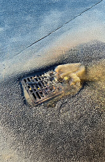 Quick action for surcharge pits backing up during heavy rain events, preventing yard and basement flooding through immediate clearing techniques.